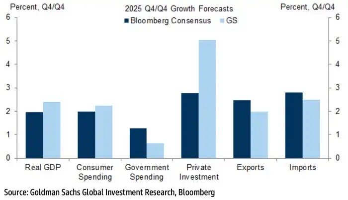高盛表示,企業投資可能遠超預期。該機構預計,第四季私人投資將年增5%,高於3%左右的普遍預期。