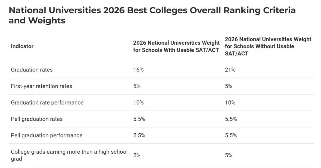 與往年「微調指標權重引發排名波動」 不同,USNews 在2026版排名發布前,已提前釋放核心信號:受「畢業生成果數據」 和「排名類別」 兩大因素影響,今年的排名將比最近幾屆更穩定。