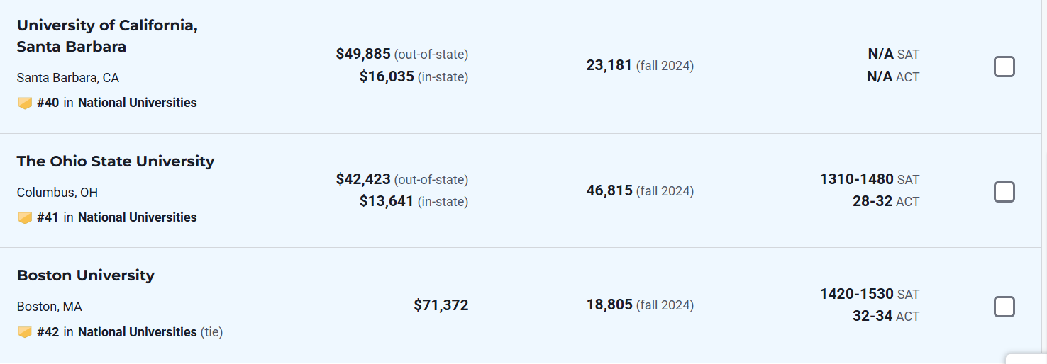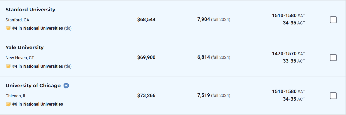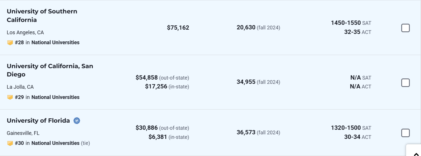 學術界對《美國新聞與世界報道》統計調查的參與度非常高。例如,全美前100所「全國性大學」中有99所,前100所「全國文理學院」中有97所已直接向我們遞交了數據。這些資訊包括2024年秋季的招生、註冊人數和教師情況。當然,學校是否參與《美國新聞與世界報道》的調查並不影響其被排名的資格。