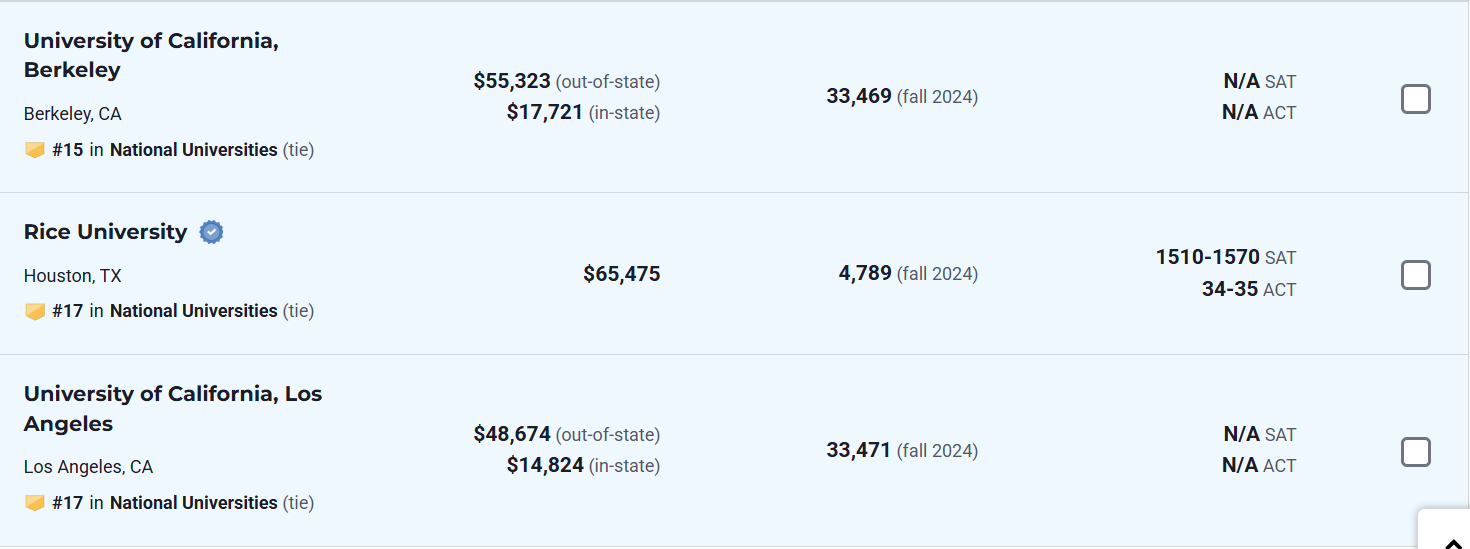 加州大學的兩位代表人物也上演了一次對調:柏克萊掉到十五,洛杉磯則是第十七,妥妥的「此消彼長」。