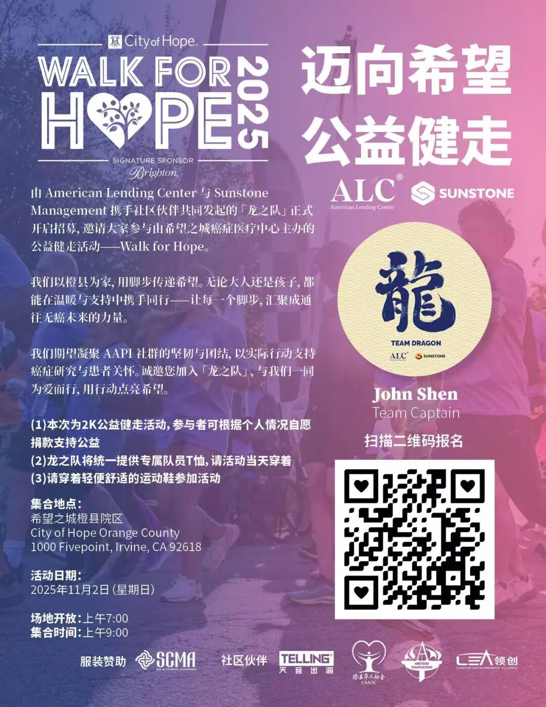 還沒來及報名的南加州華人朋友,如果有興趣參加,在本週六之前都可以通過掃碼在線上加入“龍之隊”,一起匯入週日奉獻愛心的社會洪流。