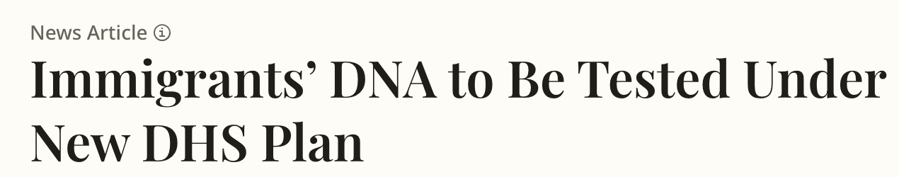 同時,支持者則表示,在移民詐欺案件頻繁、身分盜用問題突出的背景下,DNA等技術能有效驗證親屬關係,避免不實申請。 DHS也強調,所有採集的資料都將受到嚴格的隱私和安全保護,僅限於合法執法和移民目的使用。