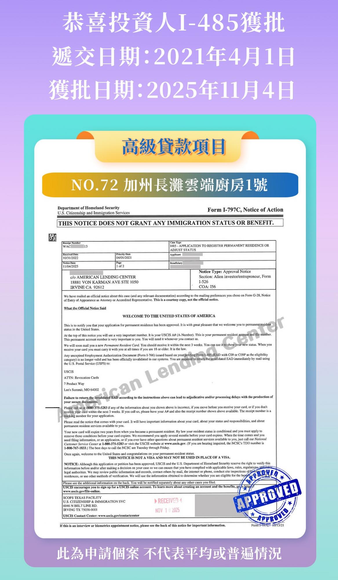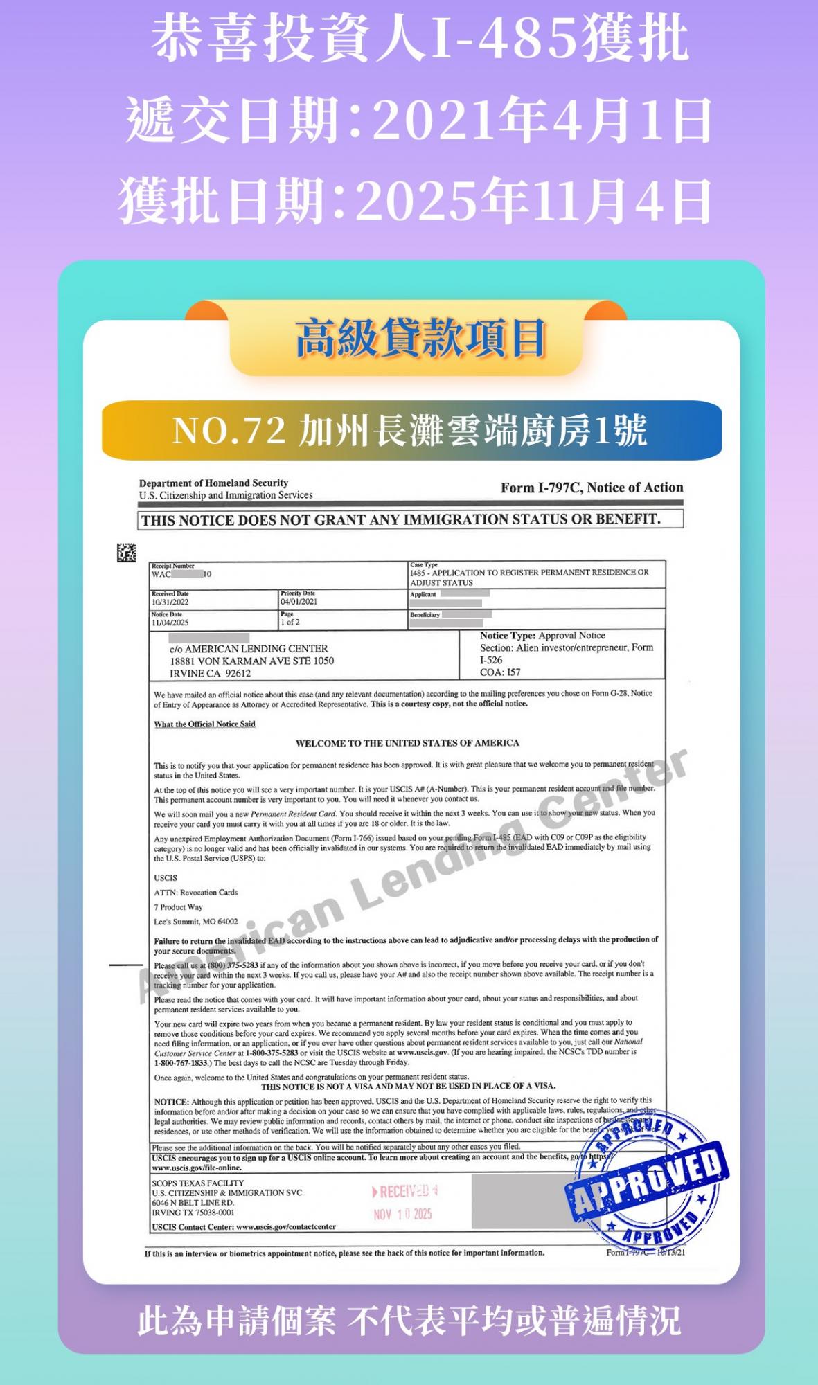 文中所述核准個案的審理速度僅代表該個案的特殊情況,不應被解讀為同類案件普遍適用的規律,更不能代表本公司(American Lending Center,簡稱「ALC」)客戶整體案件的平均審理速度。個案審批速度的過度分析或解讀毫無意義。 ALC在此明確聲明:對於因公眾或第三人對個案審批速度進行過度解讀、誤解或由此產生的任何後果,ALC概不承擔任何責任。